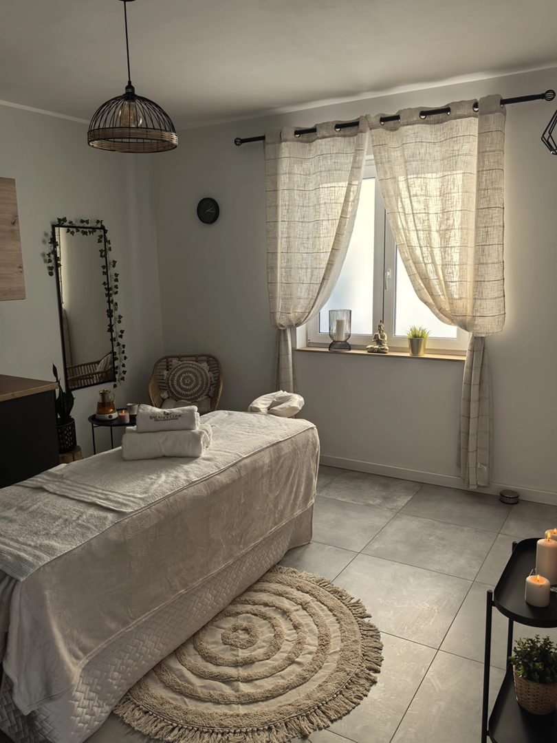 Masaż z wykorzystaniem ciepłego, przyjemnie podgrzanego, naturalnego oleju do masażu w połączeniu z wybranym olejkiem eterycznym. Korzystnie wpływa na nastrój i samopoczucie. Działa nawilżająco i odżywczo na skórę. To połączenie relaksu i pielęgnacji skóry - jej wygładzenie, nawilżenie i kosmetyczne odżywienie. Aromat do masażu wybierasz Ty.